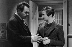 Beginning with the bones of Joseph Conrad’s novel The Secret Agent and re-imagining the material to his own ends, Hitchcock fashions Sabotage into a preternaturally stoic and chilling affair. Conrad’s anarchist anti-hero Verloc was a swarthy foreigner hatching a terror plot from the confines of his lewd general store. In Hitchcock’s version, Verloc (Oscar Homolka) has found an even better cover: he runs a cinema with his wife, Sylvia Sidney. We could tell you all about the ingenious investigation of anti-terrorism agent John Loder and the terrible plot that he cannot unravel in time, but let’s be honest about something: we love this movie primarily because it features Sylvia Sidney selling movie tickets, sweeping up the theater, and watching cartoons—just like us! Underrated in its day but subsequently acclaimed as the summit of Hitchcock’s British period by Dave Kehr and Raymond Durgnat, Sabotage perhaps achieved its greatest visibility in 2009 when Quentin Tarantino lifted a clip to illustrate the perils of nitrate film in Inglourious Basterds. (KW)