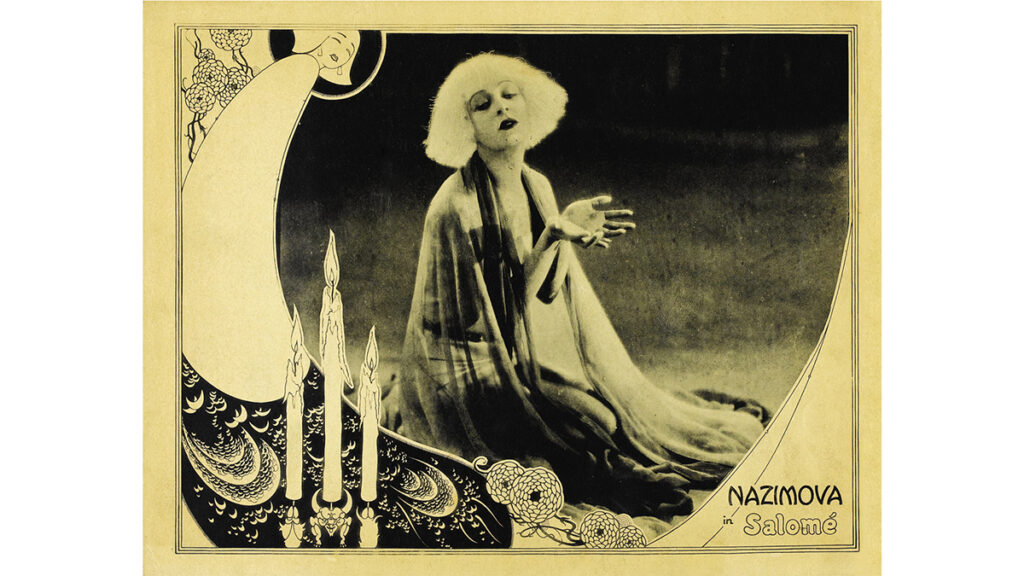 In 1922, renowned Russian stage and screen actress Alla Nazimova committed the extraordinary sum of $350,000 to produce Salomé, a film adaptation of Oscar Wilde’s popular play — directed by, written by (under a male pseudonym), and starring herself. Although a woman of forty-two, Nazimova convincingly plays the teenage Salomé, who performs the Dance of the Seven Veils in exchange for the head of Jokanaan. The film unfolds through a series of posed tableaux, deliberate movements, and highly stylized sets, resisting realism and traditional narrative action and embracing the fabulous. Photoplay cautioned that it was “a hothouse orchid of decadent passion… You have your warning: this is bizarre stuff”. Officially “directed” by her husband Charles Bryant, Salomé was largely shaped by Nazimova herself, with Bryant serving as both marital and professional beard. In his notorious Hollywood Babylon, Kenneth Anger insinuated that Salomé was made with an all-queer cast and crew — an unverifiable claim that nevertheless summons the essence of the film’s decadent flamboyance. Salomé contains no explicitly queer characters, but its sensibility emerges from a network of artists whose identities and desires had to remain unspoken. Though the film was a financial and critical disaster and effectively ended Nazimova’s Hollywood career, it resurfaced as a cult object in the 1970s when it was double-billed with Broken Goddess, starring Holly Woodland. Seen a century on, Salomé offers a record of how queerness circulates through aesthetics, rumor, and history, inviting modern audiences to read between the frames. (TV)
