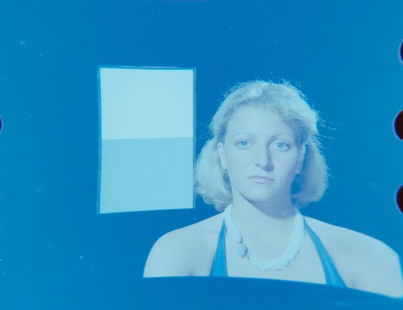 “Typically, complete reels of a china girl were shot on camera negative either by Kodak or the lab itself – to a very tight standard of exposure and processing. Once a film was shot and edited, a few frames of the china girl would be cut into the head leader of the film. Then when any print was being made from the negative, the china girl could be used as a colour control reference. Printing and processing film is a complex set of optical and chemical steps, and it’s easy for the colours to shift from one copy to the next: by including a known standard image, lab QC technicians could take densitometer readings of the grey squares, and also make a visual assessment of the facial flesh tones to determine if the print was within tolerance. This is obviously more objective and consistent than judging any scene in the film, which might have been shot or graded deliberately dark, or reddish etc. for story-telling purposes.
